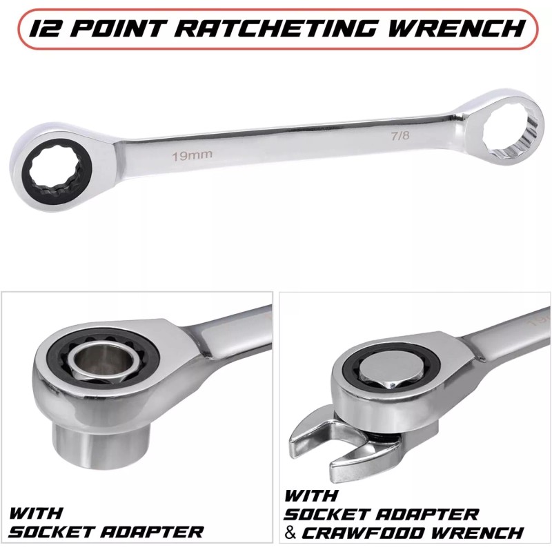 • 15 Piece Complete Set: serpentine belt tool kit includes everything you need for serpentine belt works. A ratcheting wrench, 3 x socket adapters, 7 x metric 6-point sockets, 3 x open-end crowfoot wrenches, and a long extension bar