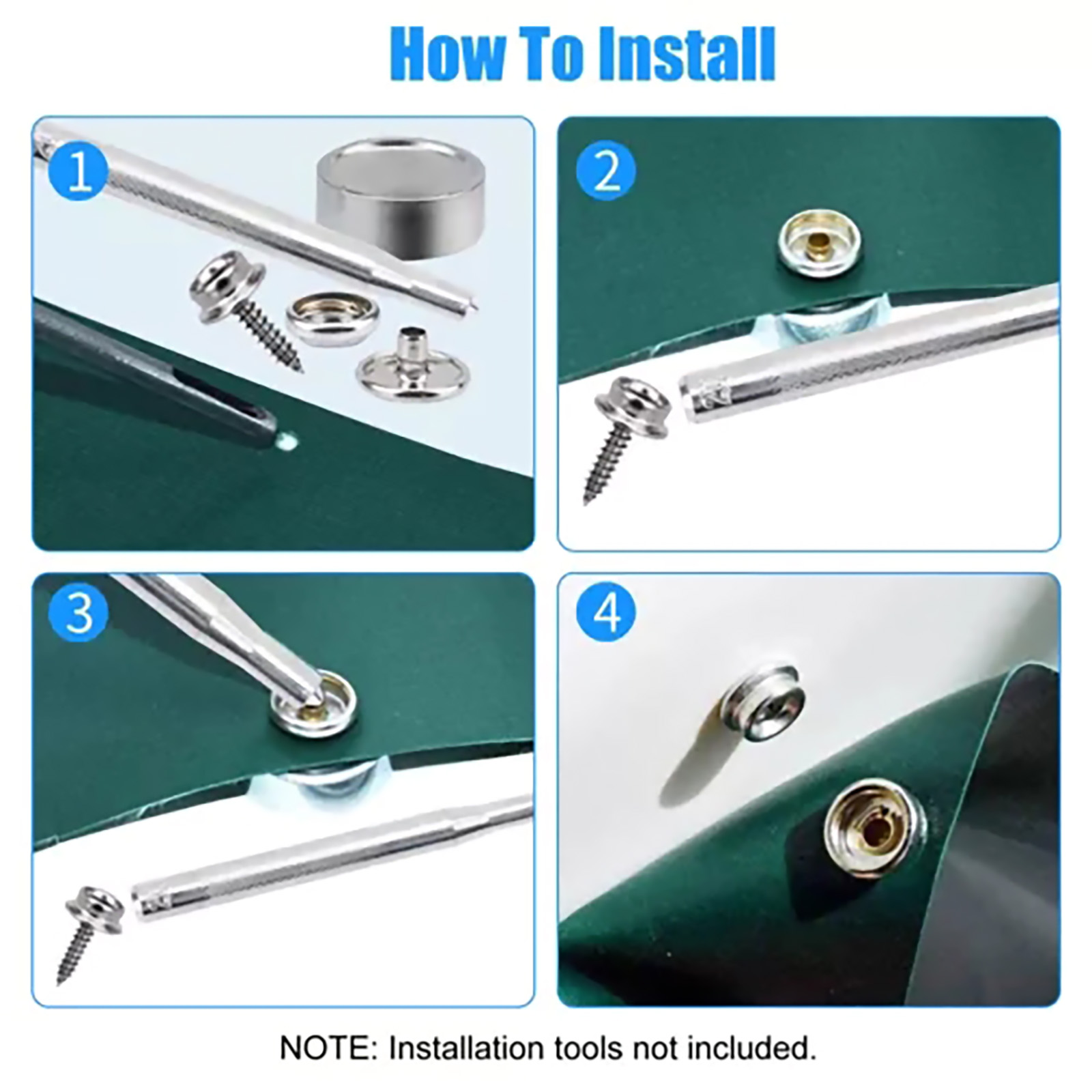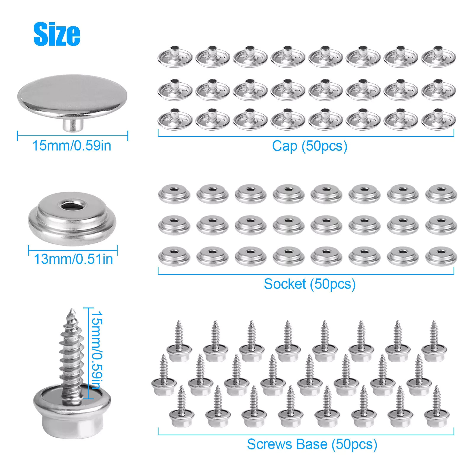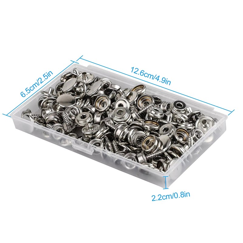 Stainless steel snaps are suitable for various materials like boat covers, canvas, tarpaulin, tents, awnings, clothing, leather, furniture, lawn furniture, etc., and can be attached to the surface. Suitable for indoor or outdoor use, very suitable for DIY.