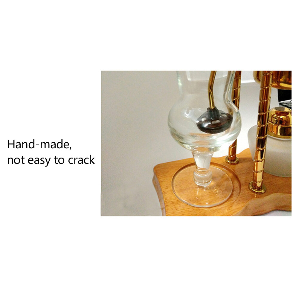 - Components Included: water container, alcohol lamp, siphon tube, glass cup, coffee spoon, measuring cup, stent