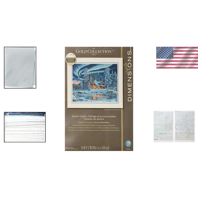 Unbranded 16 Count Dove Grey Cross Stitch Kit - Create Stunning Aurora Cabin Wall Art