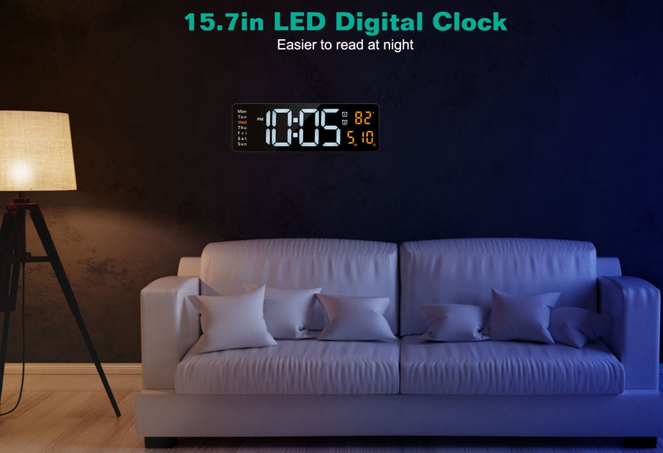- 15.7in LED Digital Clock:The large display makes time easier to read at night,especially for seniors,or people with poor eyesight.