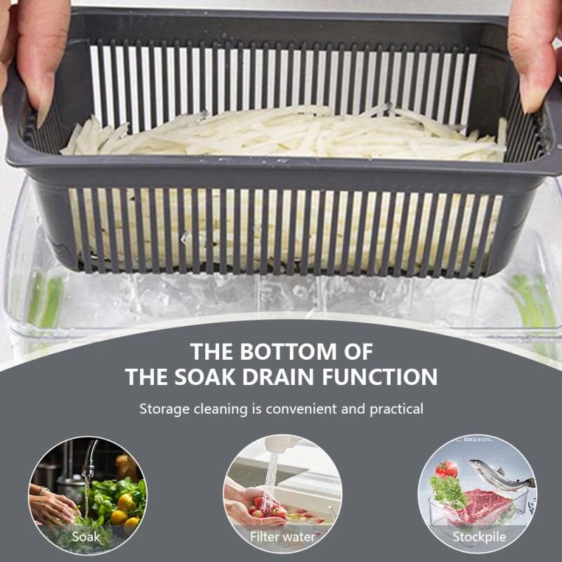 With the drainage basket design, you can filter excess vegetable water into the chopper container and quickly wash processed fruit and vegetables. Space saving and very easy to use.