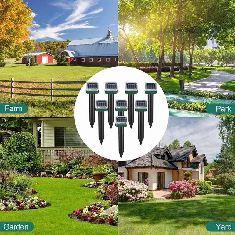 Solar mouse repeller is a non-toxic, maintenance-free, energy-saving ultrasonic pest control product. This is almost the easiest way to remove moles etc. Effective coverage area: 5000 square feet. Generally, spikes must be used continuously for 2-3 weeks before ground rodents start to leave the area. Install it in your yard, garden or lawn wherever there is sunlight.