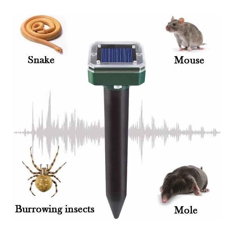 - When placed in the ground and activated, sonic pulses penetrate the soil every 30 seconds, emitting a sound which is highly irritating to moles and gophers, mice, voles, snake and other rodents. The sonic pulses encourage underground varmints to vacate the property and also discourage return visits.