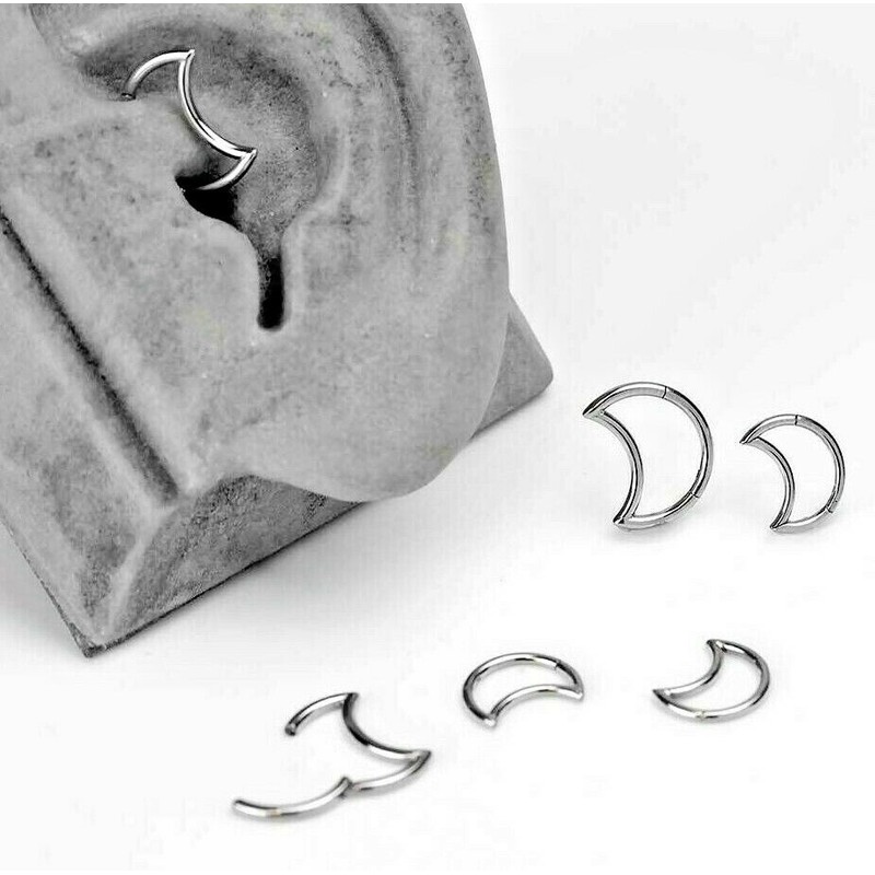 Unbranded 16G 5/16" Crescent Moon Ear Tragus Nose Septum Hoop Clicker Steel Hinged Ring