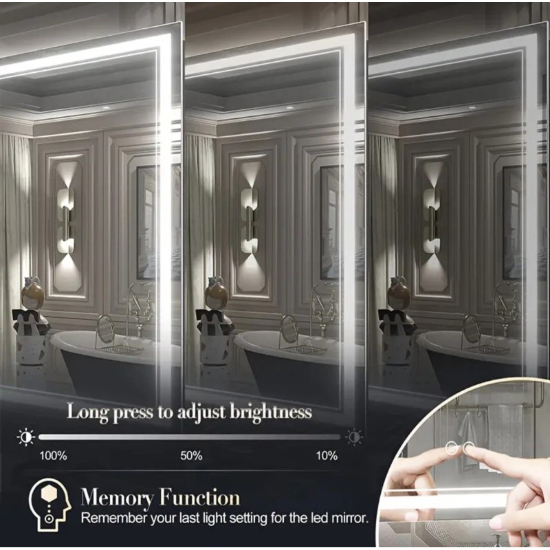 - Features: Fogless, Touch Sensor, Smart Backlit, Anti-Fog, Dimmable Lights, 1/5 Inch Tempered Glass, Explosion Proof