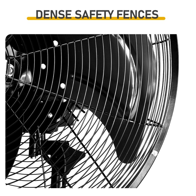 This 18inch 318 Industrial Wall Fan has wide-angle oscillation to refreshing each square foot of your space nicely.The strongest wind can reach 4592 CFM, and it can block flies and barbecue smell.this product is renowned for its sturdy all-metal construction, ensuring durability. The lightweight yet resilient aluminum fan blades guarantee long-term performance, making it ideal for heavy-duty use.It’s a great helper to ventilate your gymnasium,Commercial, Garage, Workshop, Residential, Warehouse,Greenhouse and Basement.