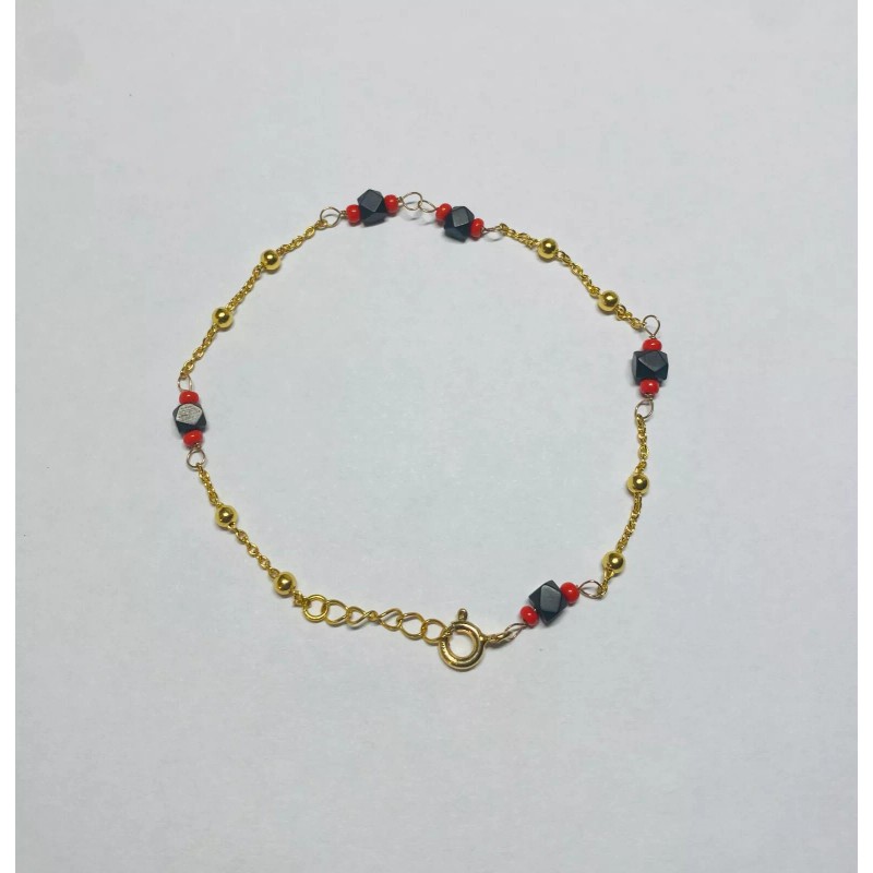 Unbranded 18K Gold Plated Ster Silver Genuine 3mm Azabache Jet & Coral Satellite Bracelet