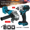 Unbranded 18V Tools Combo Kit 1/2" Impact Wrench+125mm Angle Grinder+2 Battery Fits Makita