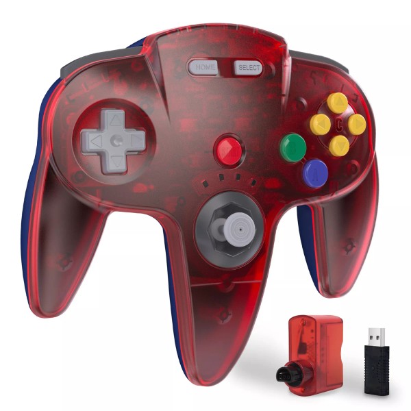 Unbranded 2.4G Wireless N64 Switch Controller for N64, Switch PC iOS Mac Win Steam Android - Clear Red Blue