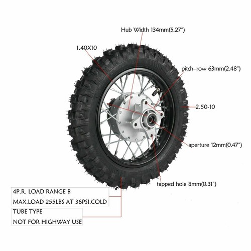 10 inch Rear Wheel Rim Tire Assembly For PW50 Dirt Bike 50cc 70cc 110cc