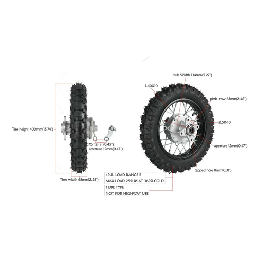 - Rear Tire Size:2.50-10