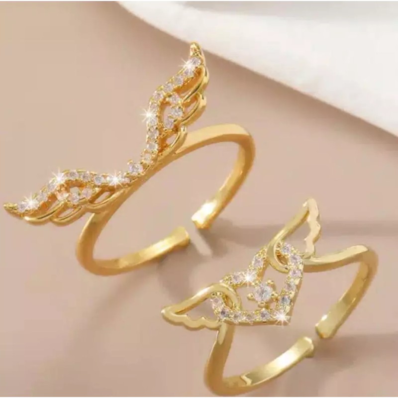 Unbranded 2 Angel Wings LOVE Heart Open Zircon 18K Gold Plated Rings