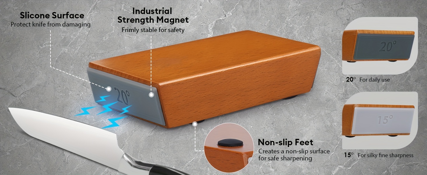 - Premium Craftsmanship: Engineered with wood from Germany’s Black Forest, featuring N42 magnets to hold your knife securely while sharpening for safety and ease.