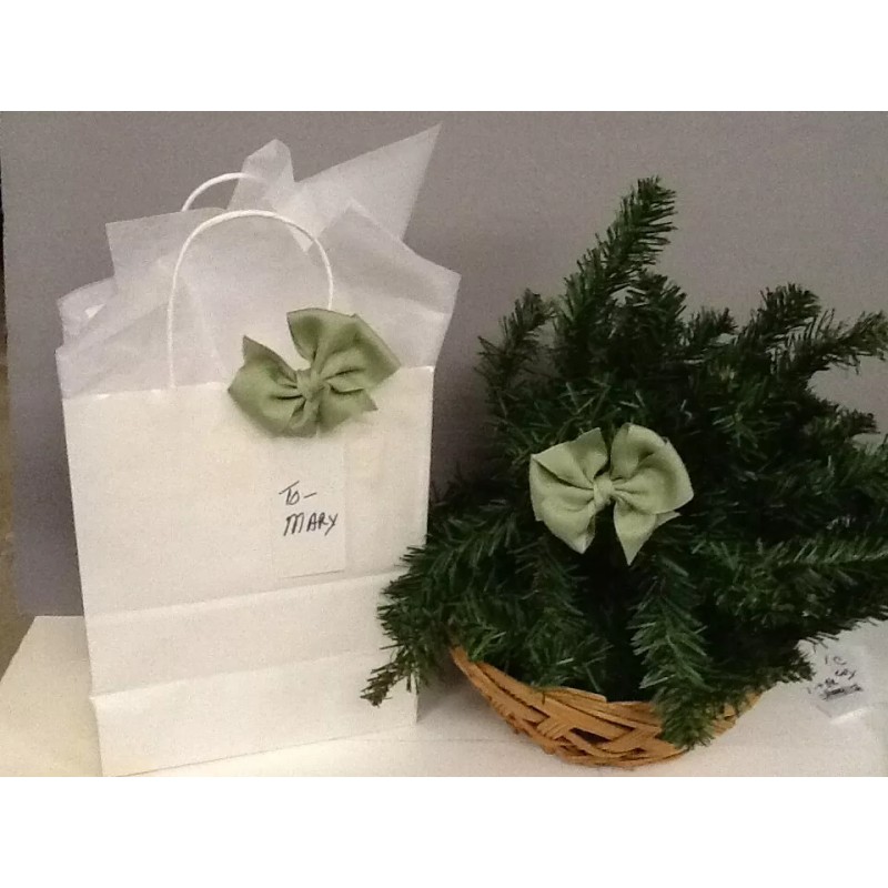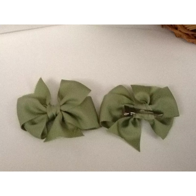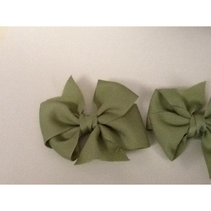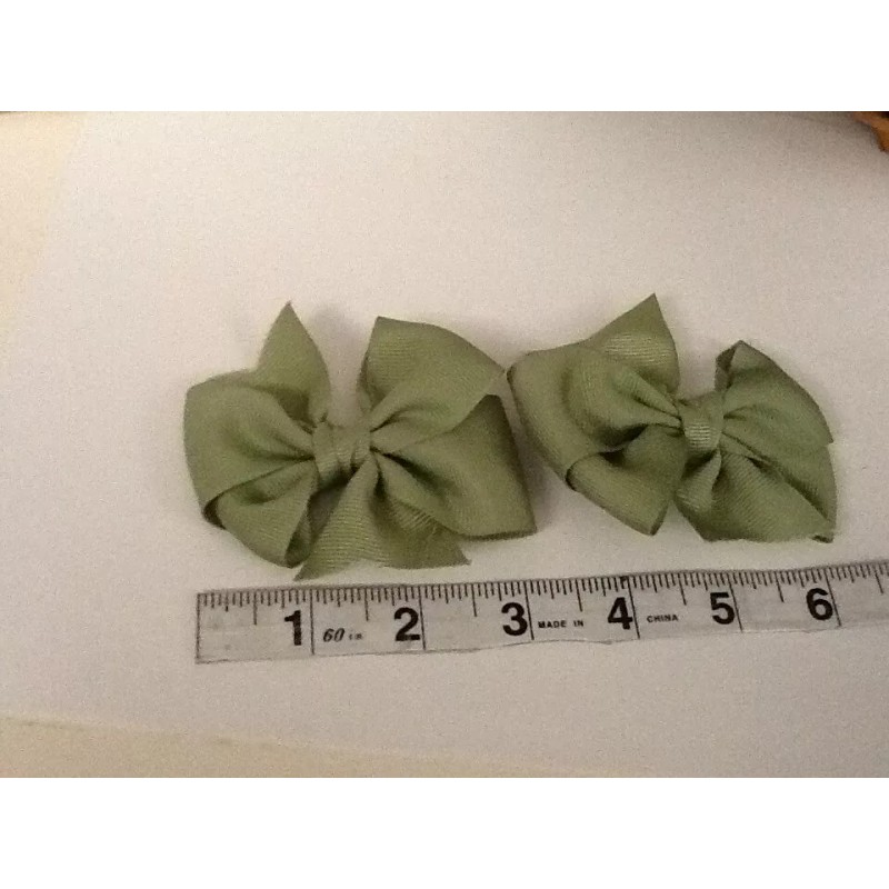 2 Olive Green Grosgrain Bows – Uses: Hair, Christmas Ornament, Pkg. Tag – 3” –