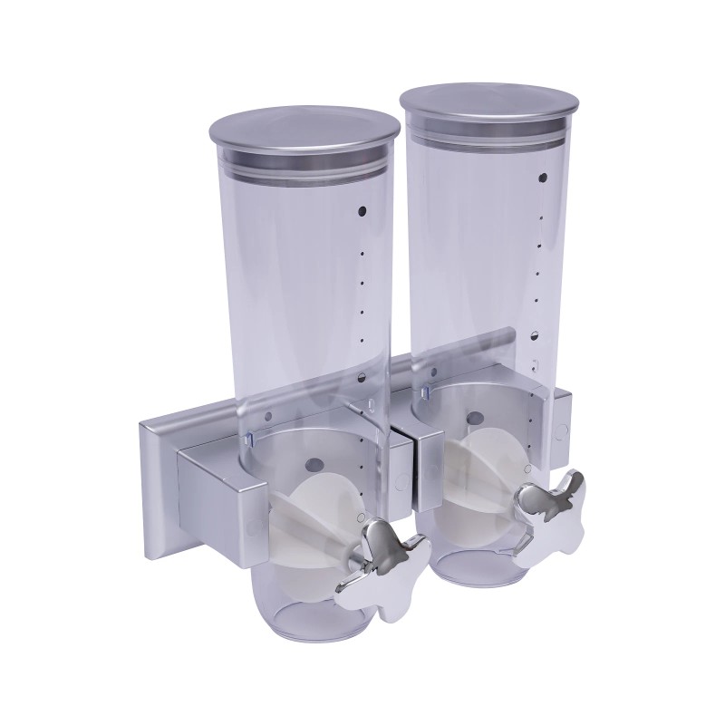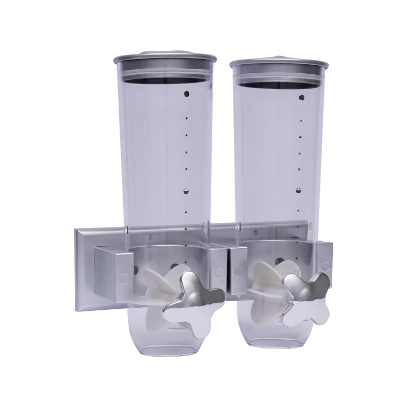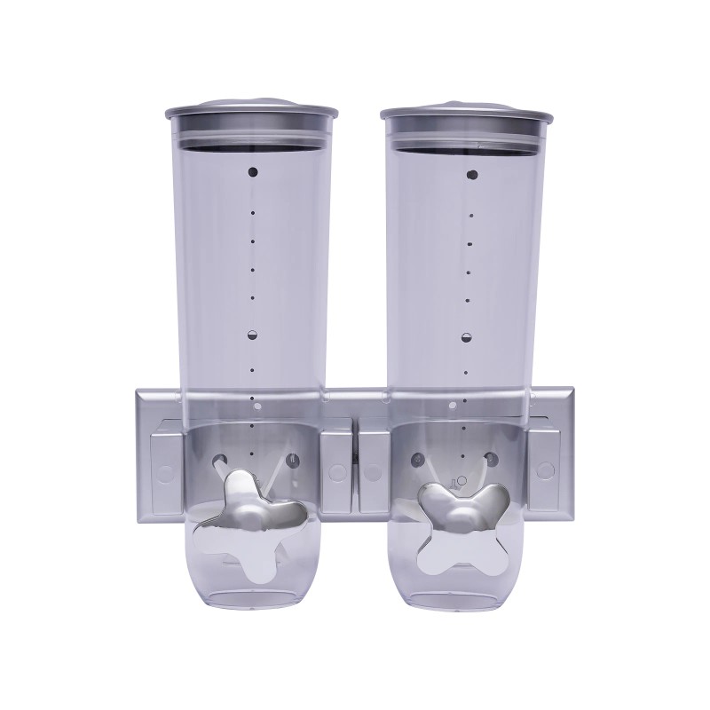 - Food-grade Material, Made of Plastic. Easy to Clean. Keep Food Dry and Fresh for up to 45 Days. Designed to Maintain Freshness and Flavor, It Is a Double Dry Grain Dispenser for Nuts, Candy, Grains and Other Small Grains. Easily Installed on Any Wall in a Hotel Breakfast bar, Candy Store, Market, Oatmeal or Coffee Shop. Not Only Can Be Very Good Storage of Food, but Also Can save Desktop Space, Can Better Use of Space!