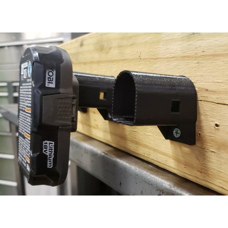This listing is for 2 battery holders. Batteries NOT included. These are mountable battery holders for Ryobi One+ 18V batteries. Mount has a 7 degree angle to keep from accidental falls. These will help you organize and keep up with your batteries in your home, garage, or any other workspace! Comes with holes ready for you to attach to your work surface. The mounting screws are not included as different screws may be required for your fastening surface. These are 3d printed so product look may vary slightly.