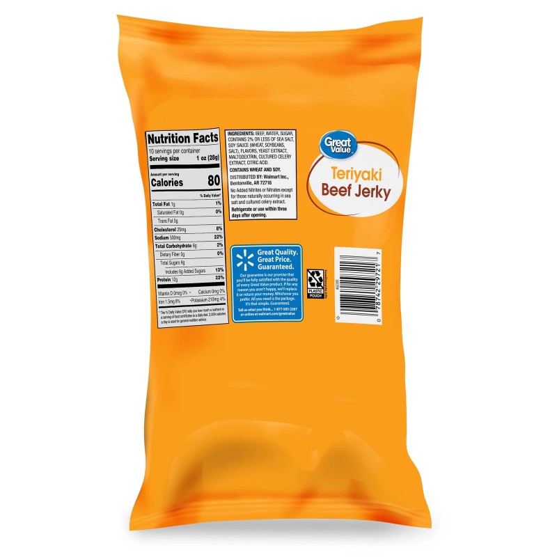 Unbranded (2 pack) Great Value Teriyaki Beef Jerky Value Pack, 10 oz