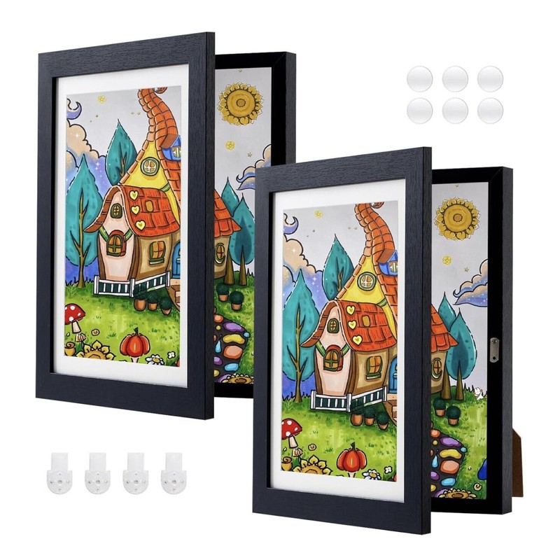 Unbranded 2-pack Kids Art Frame A4 Front Opening Wood Artwork Frame Wall Mounted Or Stand