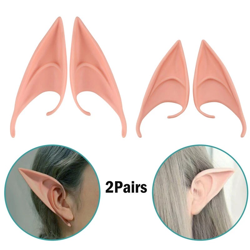 Unbranded 2 Pair Rubber Elf Ears Fairy Elven Pixie Hobbit Demon Halloween Costume Cosplay