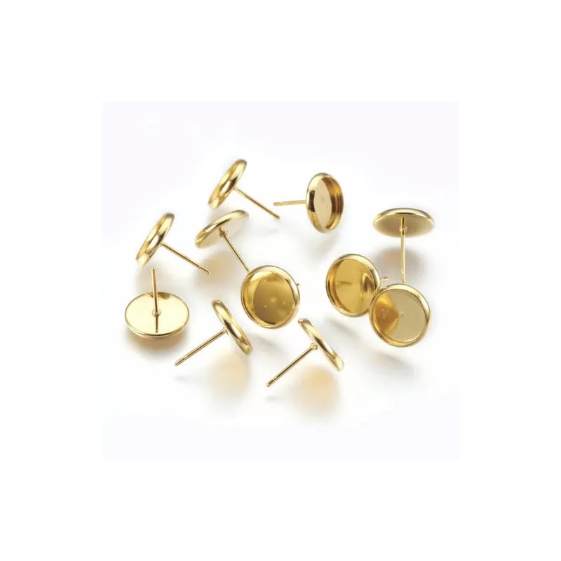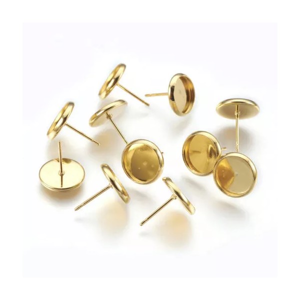 Brand NEW Gold Plated Earring Posts Settings Bezels Cabochons (Blanks). – Made of Stainless Steel!