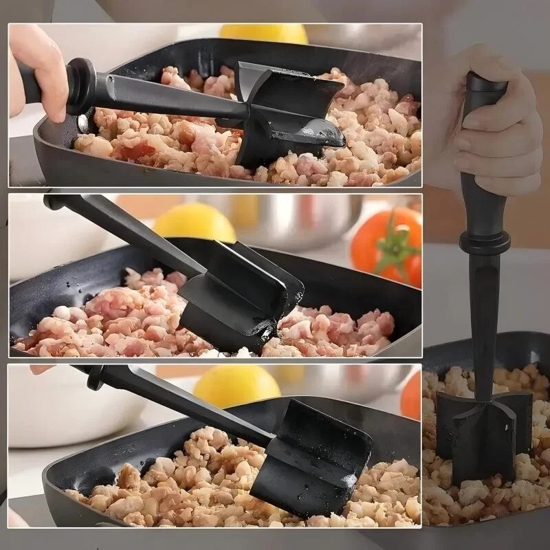 - High Quality Food Masher: Our hamburger meat chopper is made of high quality nylon. Our meat masher kitchen tool is more long lasting, nonstick and unscented. This meat shredder tool is heat resistant, ensures even cooking right in the pan.