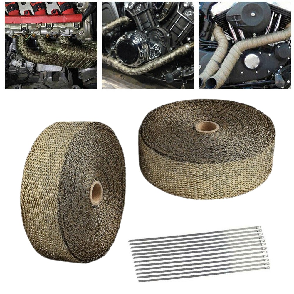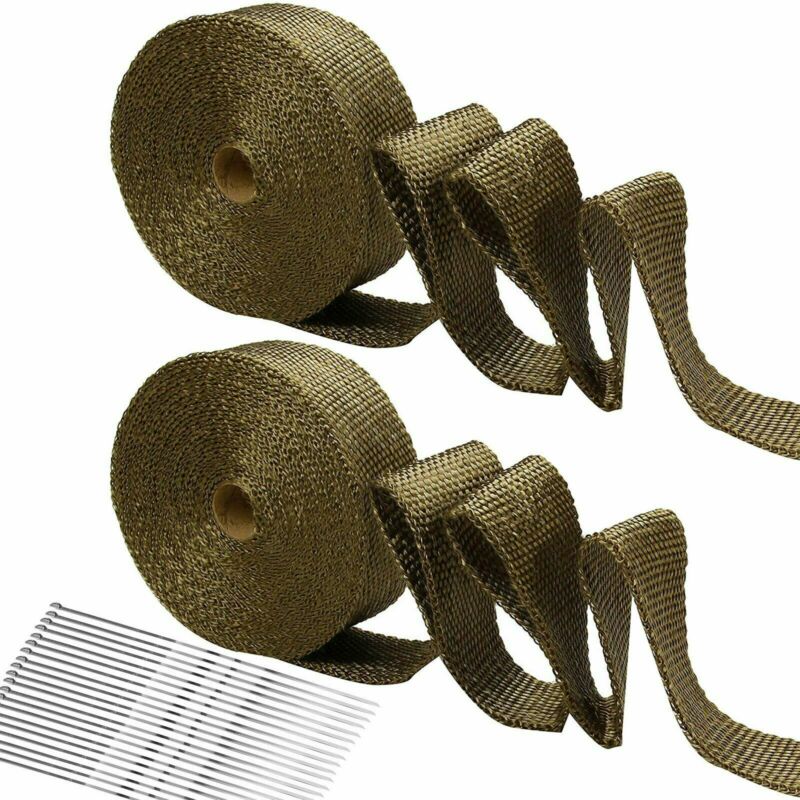 Unbranded 2 Rolls 2"x 50ft Thermal Header Pipe Tape Titanium Exhaust Wrap 20 Ties Kit