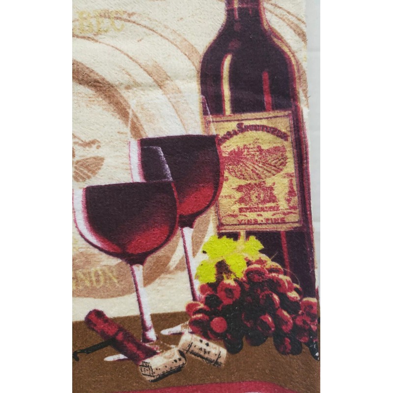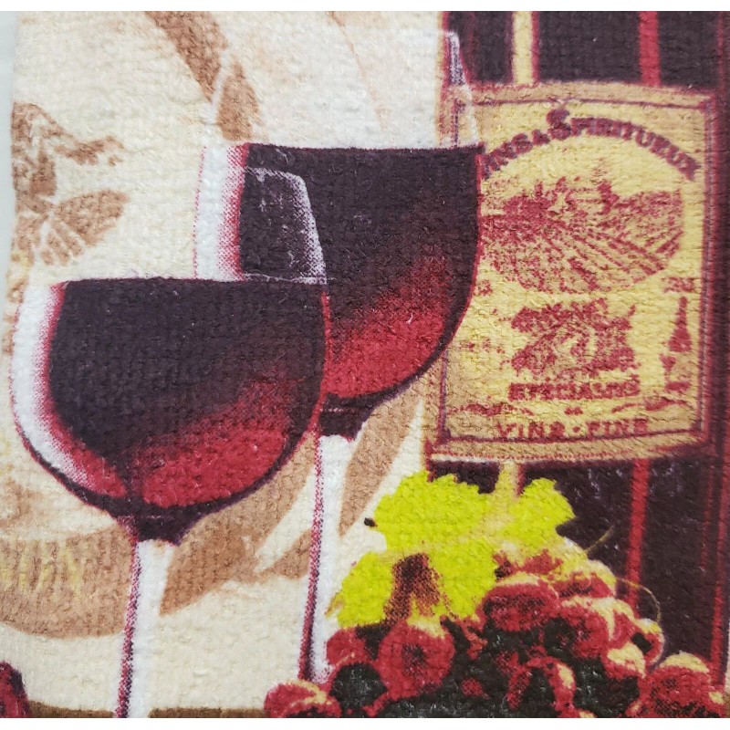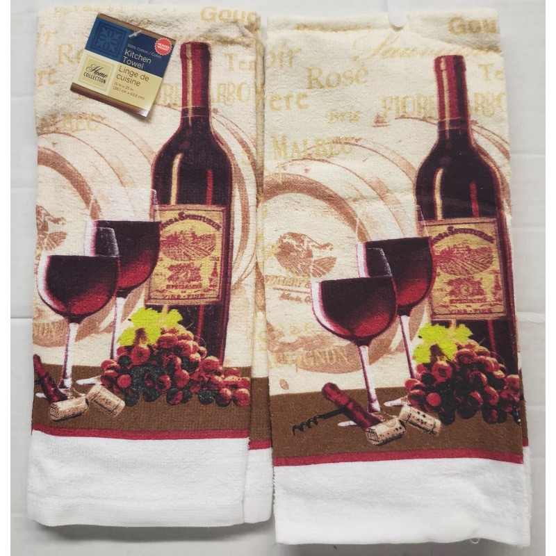 I'm selling a SET OF 2 SAME PRINTED KITCHEN TERRY TOWELS, 15" x 25", WINE & GRAPES, 1 WINE BOTTLE & 2 GLASSES # 1 as shown on the pictures.