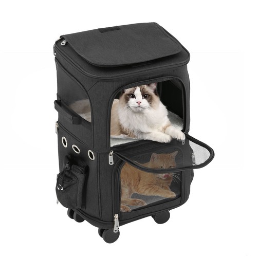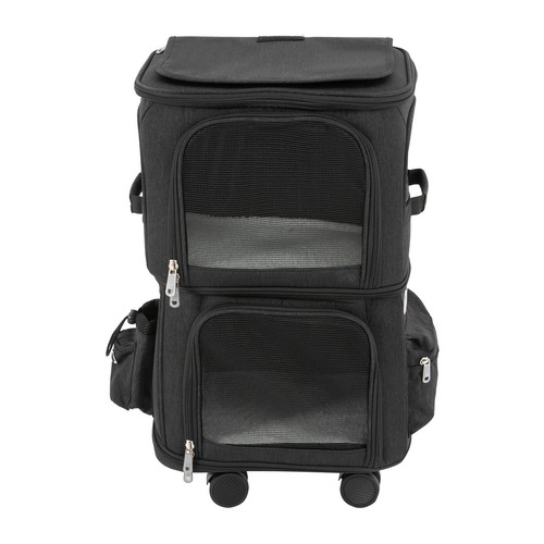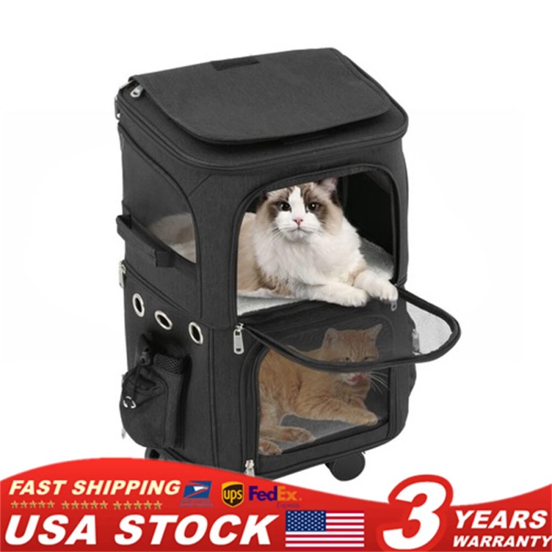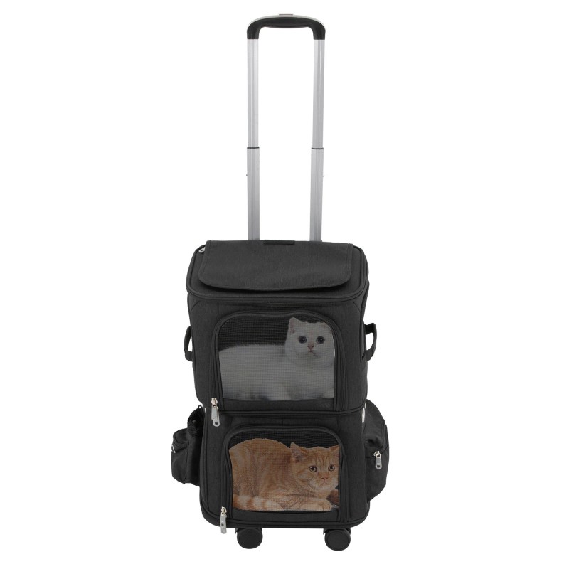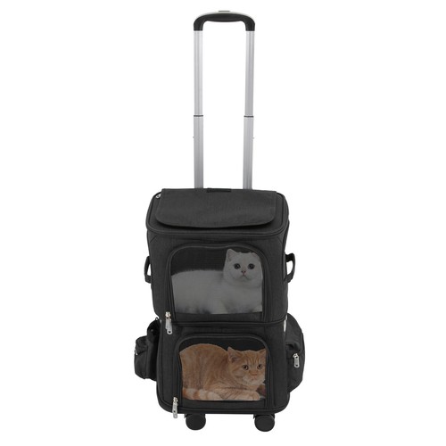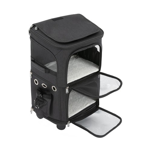 Unbranded 2 Tiers Rolling Pet Carrier with Side Pockets Cat Carrier with 4 Wheels Black