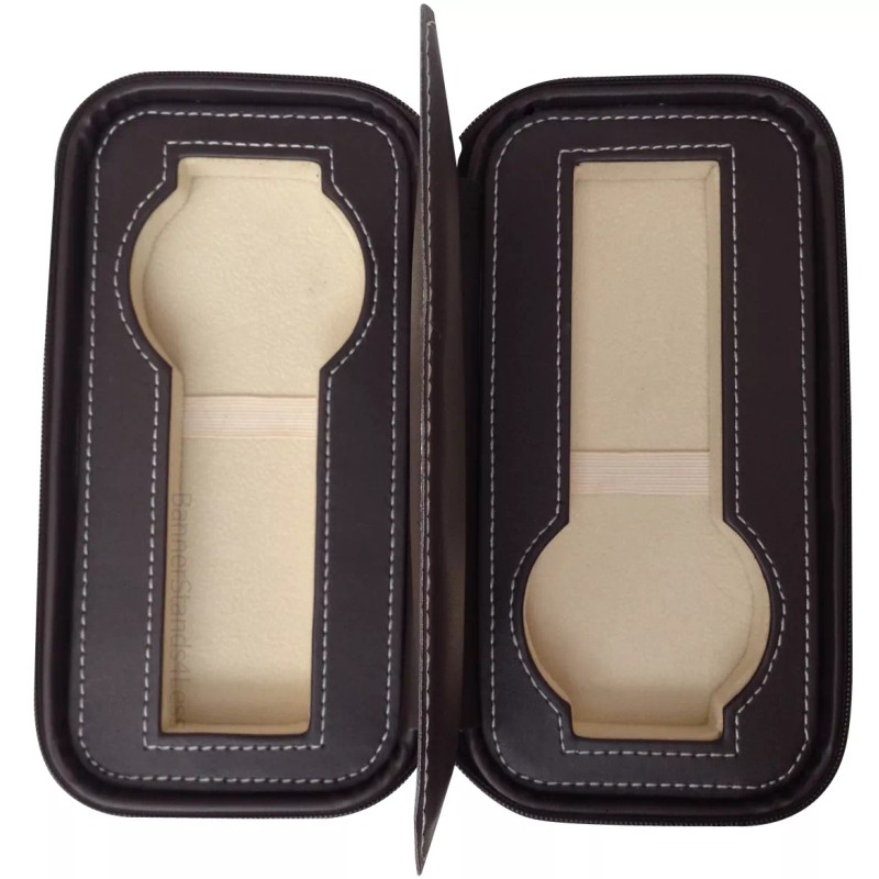 Unbranded 2 Watch Portable Brown Leather Watch Case Zippered Traveling Storag...