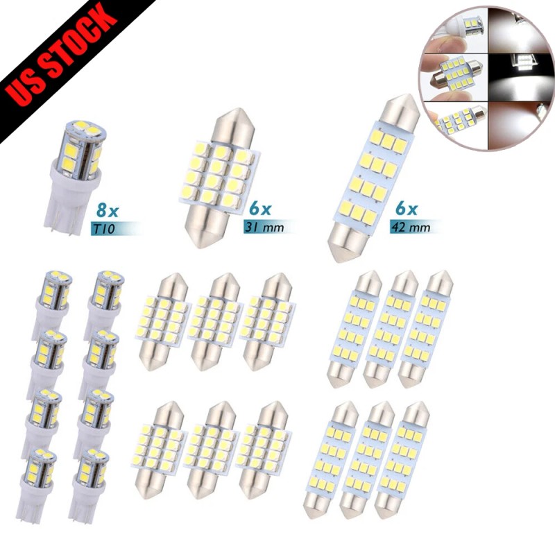 This listing is for a total of 20 Xenon White lights that replace your stock Interior, dome, & license plate lights. All of these lights are a direct plug and play with no modifications required.