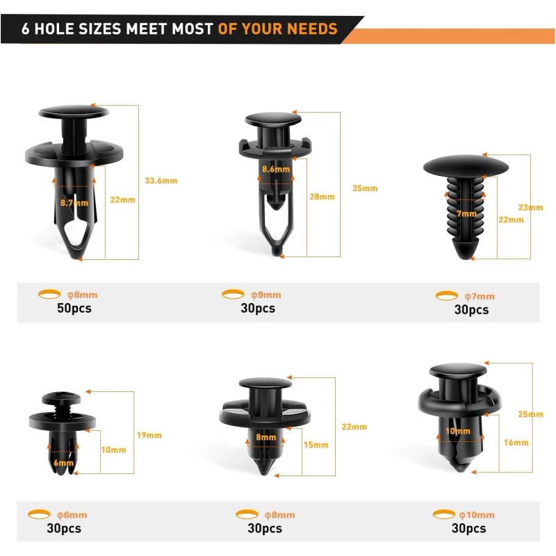 5.Save your time and money. No need to go to the auto parts store to find different clips.