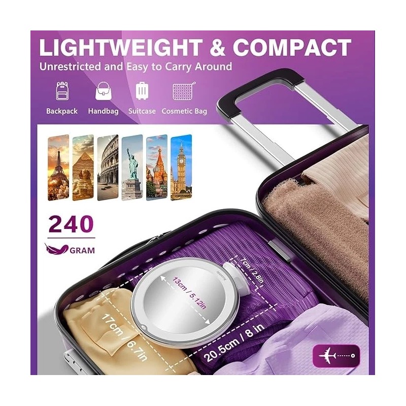 - ๐๐ข๐ ๐ฃ๐๐๐ง & ๐ฃ๐ข๐ฅ๐ง๐๐๐๐ ๐๐๐ฆ๐๐๐ก - The 2025 upgraded magnifying mirror's elegant and portable design makes it a stylish and functional addition to any vanity or travel kit, enabling users to maintain their grooming and beauty routines with ease and sophistication. Our lighted magnifying mirror's weighing just 8.46 ounces, which is so lightweight and compact, making it convenient to carry in your handbag or travel case.