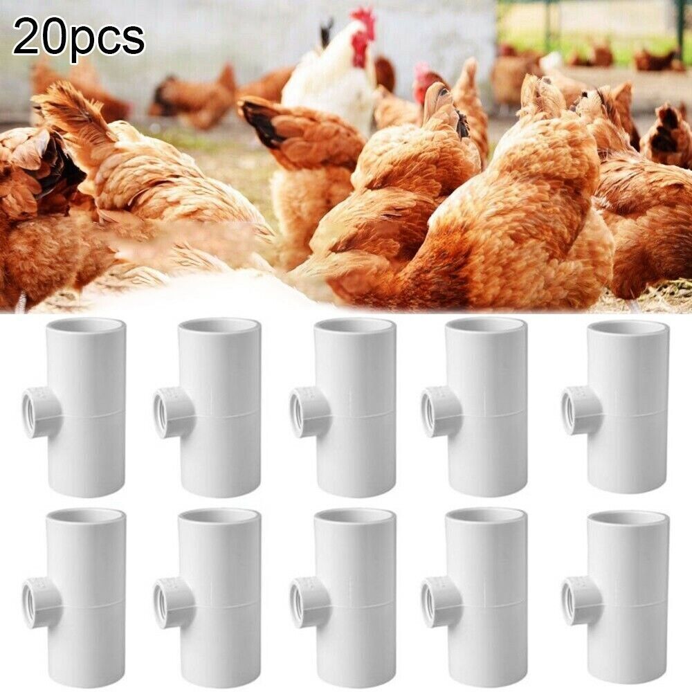 Unbranded 20Pcs Automatic Waterer Dispenser Cups PVC Tee Fitting Chicken Water Poultry New
