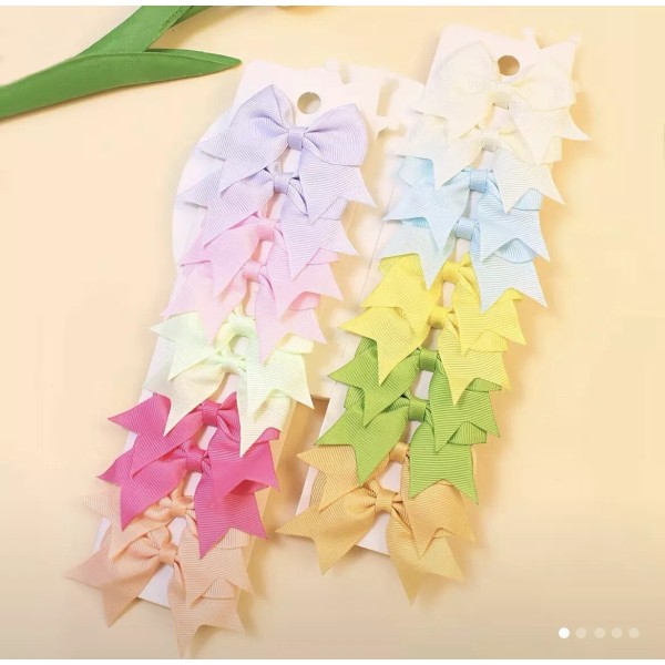 Add some colorful flair to your child's hair with these 20pcs Hair Bows Clips. Made of high-quality polyester and grosgrain ribbon, these headwear accessories are perfect for any occasion, from formal events to casual outings. The bows come in a variety of multicolor patterns, and the solid design makes them easy to match with any outfit.