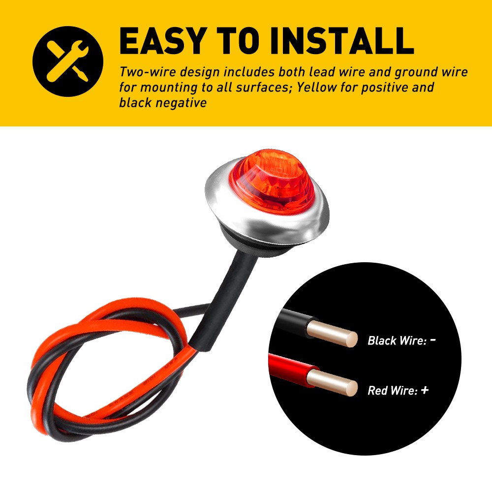 Specifications: Material: PC Lens Silicone Rubber Base + 304 Stainless Chrome Bezel Cover Lights Color: Red+Yellow Light source power: 1 W Voltage: 12V Luminous flux: 80LM Lifespan: Over 50000 hours Water and Dust Resistant Wiring: 2 wires ( black & yellow ) Application: Car , Truck & Trailer lighting; Boat interior & exterior lighting; Roof Lighting; Anywhere you want because it easy to install !