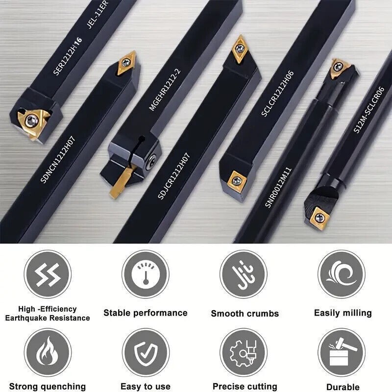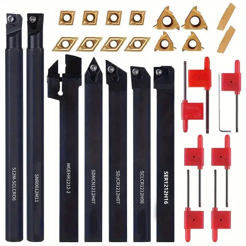 Each tool holder and insert is precision-engineered to ensure consistent performance and tight tolerances. The set is designed to deliver clean, accurate cuts with minimal chatter, even at high speeds.