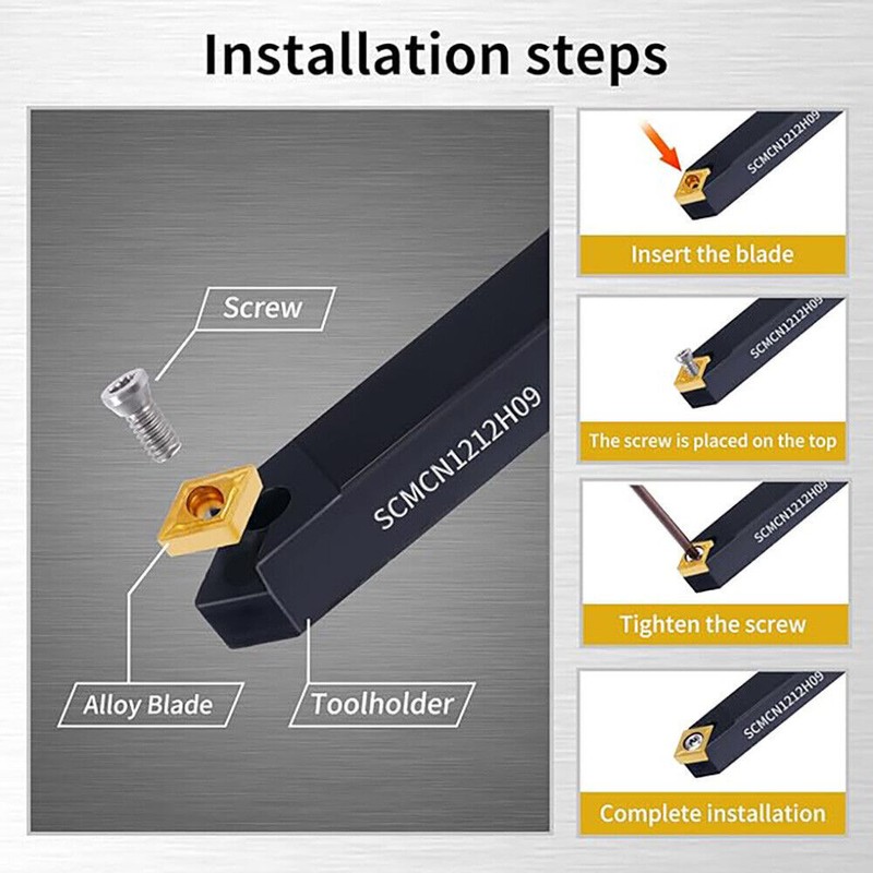 The tool holders feature a 1/2" (12mm) shank, ensuring compatibility with most standard lathe tool posts. The sturdy shank provides excellent stability and reduces vibration during operation, resulting in smoother cuts and improved surface finishes.