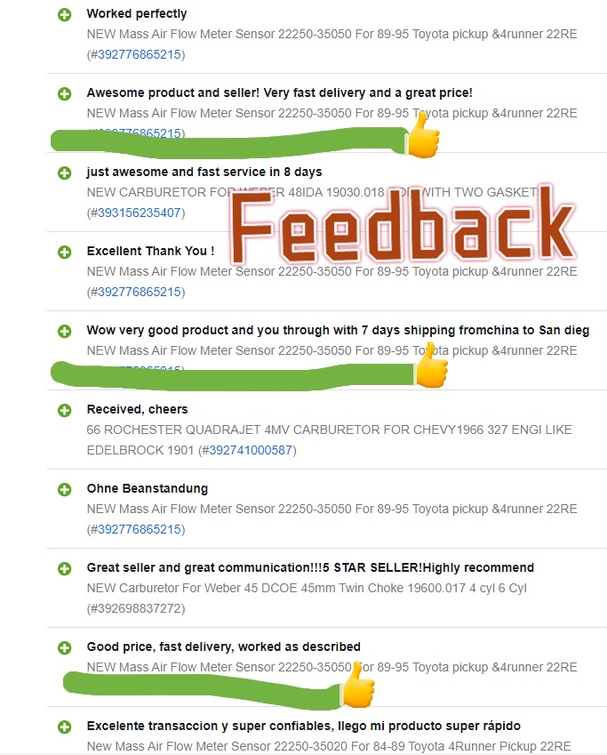 Pls see real good feedback from my Esteemed customers/partners3-10 days delivery time(it's not under our countrol ) but we can guarantee is that you must get a sensor in good condition. hope your kindly understanding!