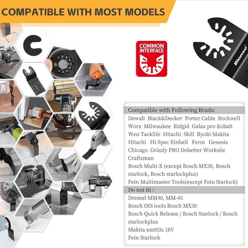 - Universal Fit & Easy Swap: Compatible with DeWalt, Milwaukee, Ryobi, Makita, Worx, Wen Rockwell, and more, these multitool blades fit most oscillating tools on the market. The quick-change design lets you swap blades in seconds—no extra tools needed! these oscillating saw blades lock in securely for vibration-free precision. Say goodbye to wobbling or loose attachments!