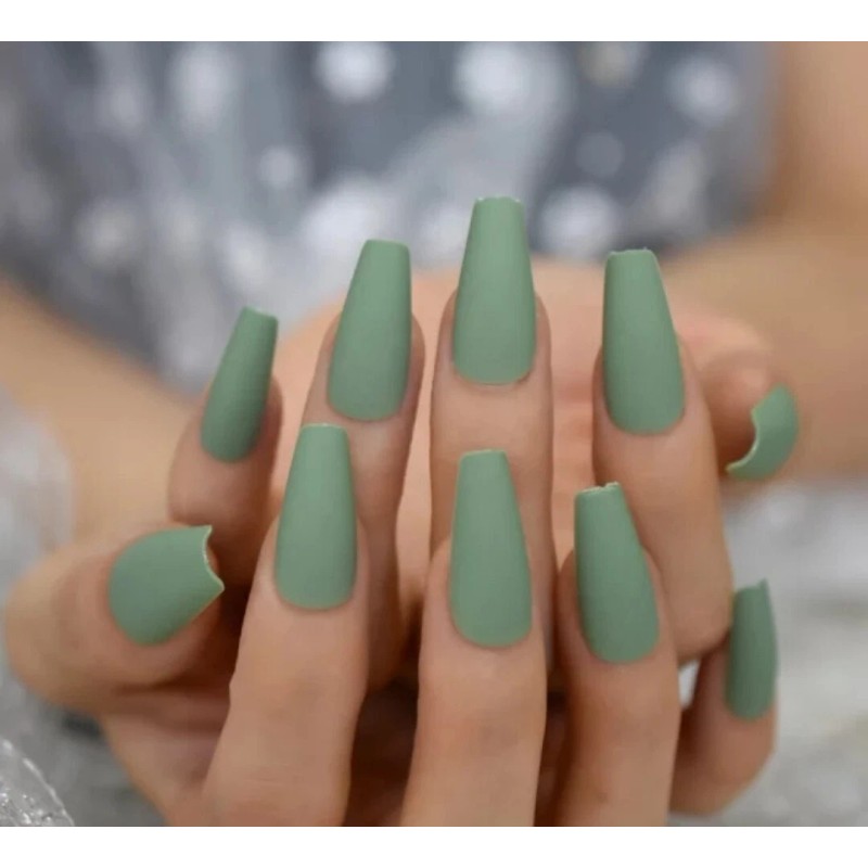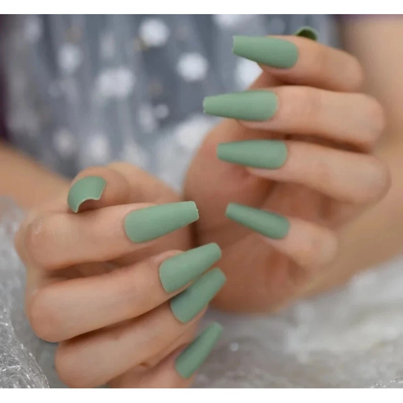 Unbranded 24 Press on nails kit w glue Long coffin Matte Sage Green