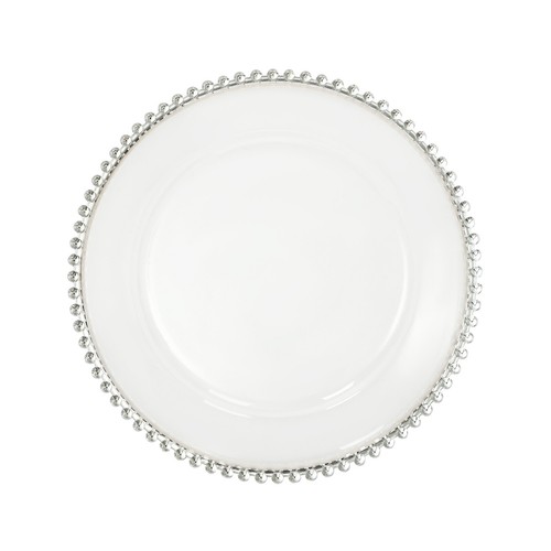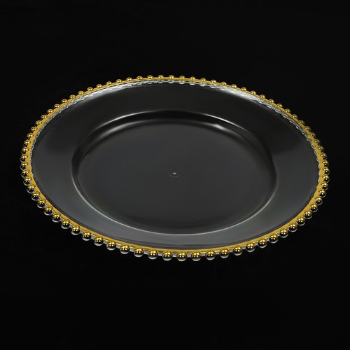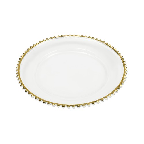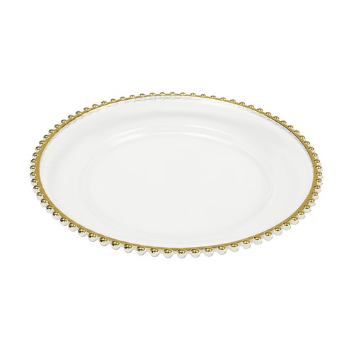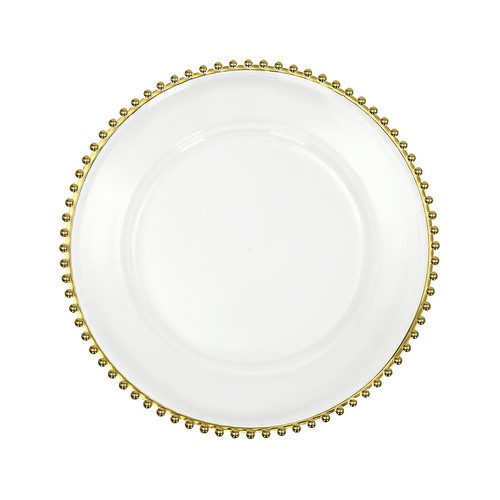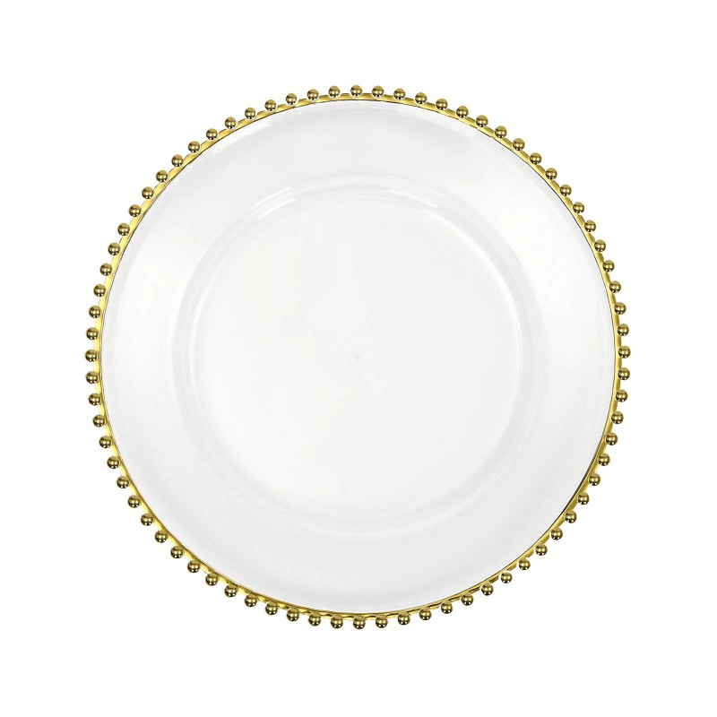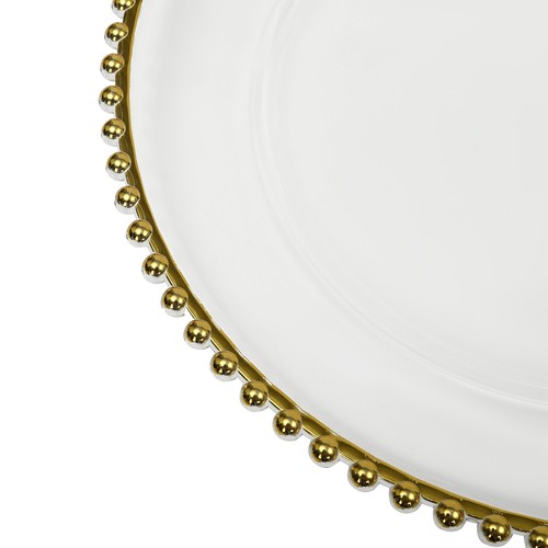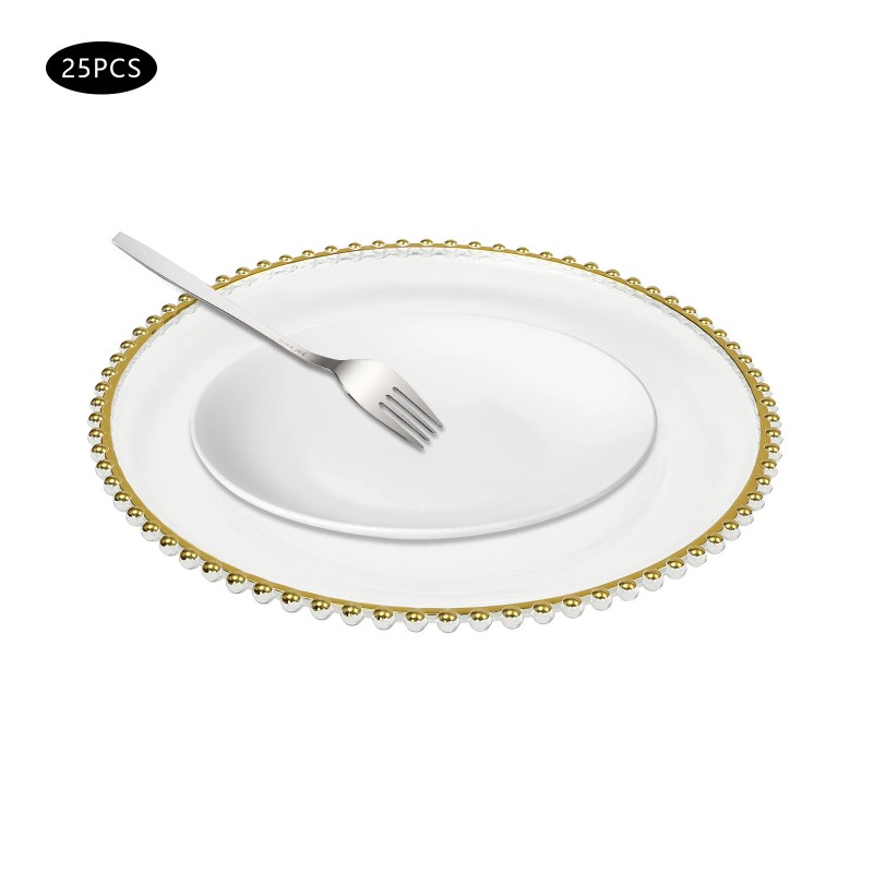 25* Clear Charger Plates Round Plate Dinnerware with Gold Elegant Beaded