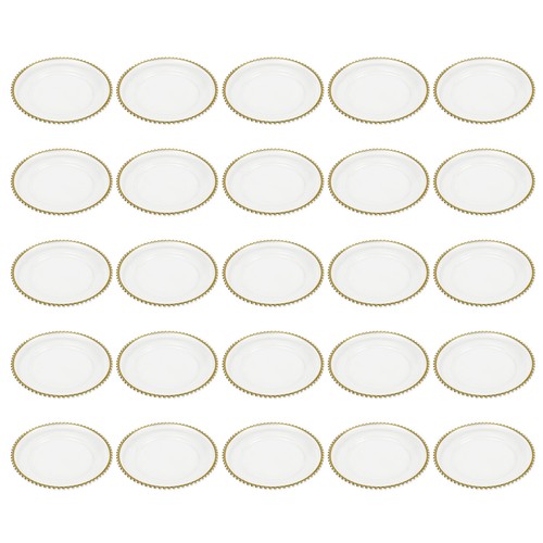 Stylish Appearance: It Boasts a Simple Round Shape with a Gold Elegant Beaded Design Around the Edges for an Elegant and Classic Look That Will Draw Attention and Enhance Food Presentation at Your Catering Event. It Can Match Well with Other Tableware Sets, Decorate Your Party and Make Your Dining Table More Attractive.