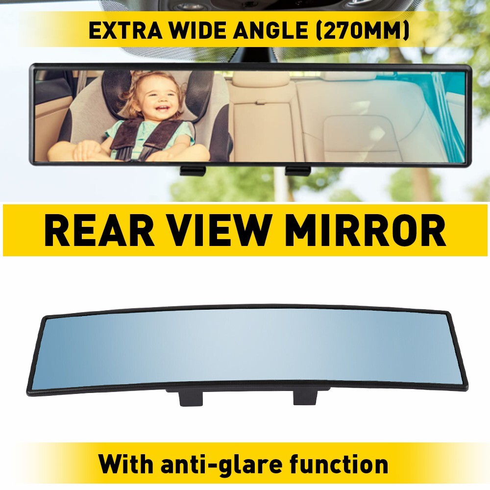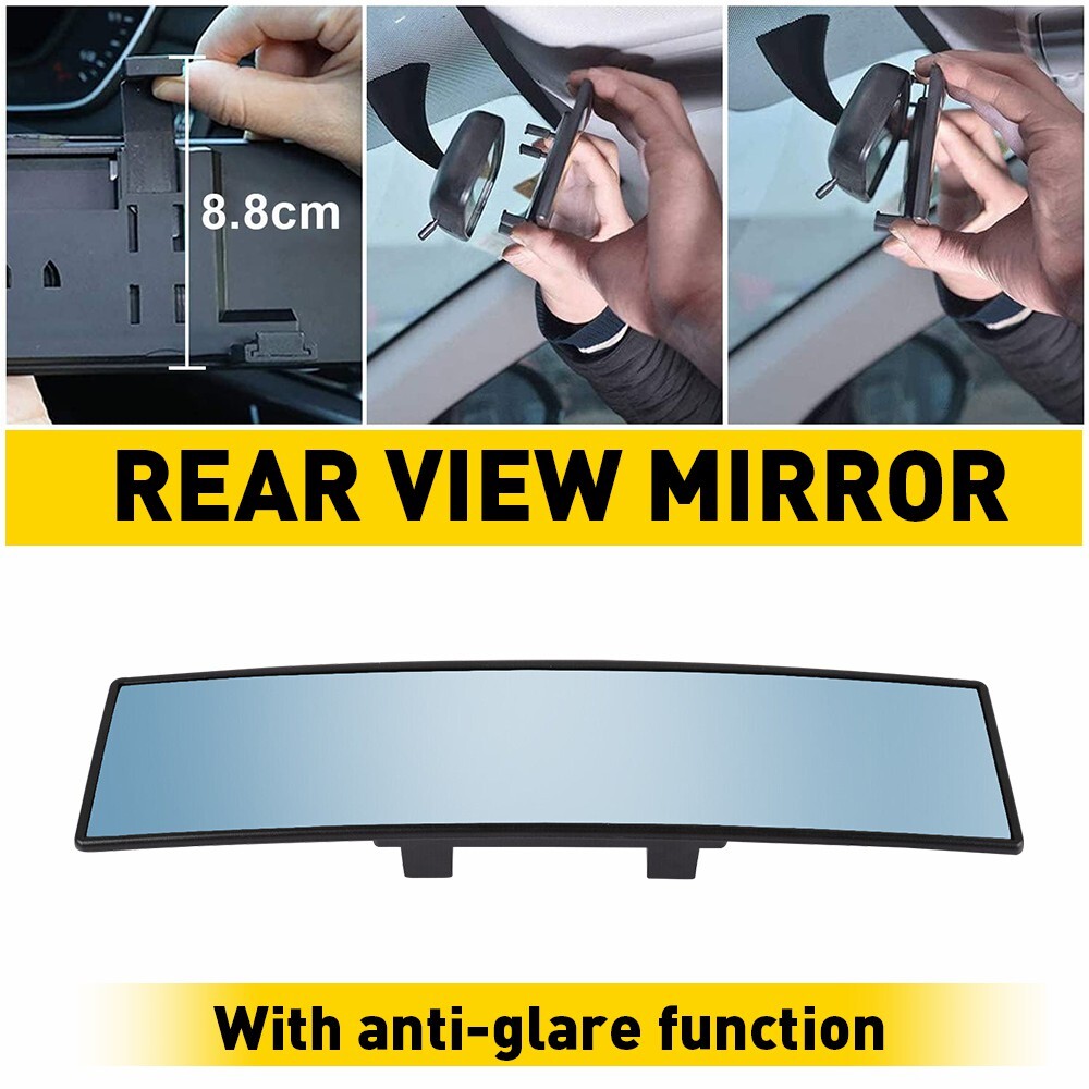 270MM Wide Interior Blue Tint HD Mirror Convex Clip On Rear View Universal