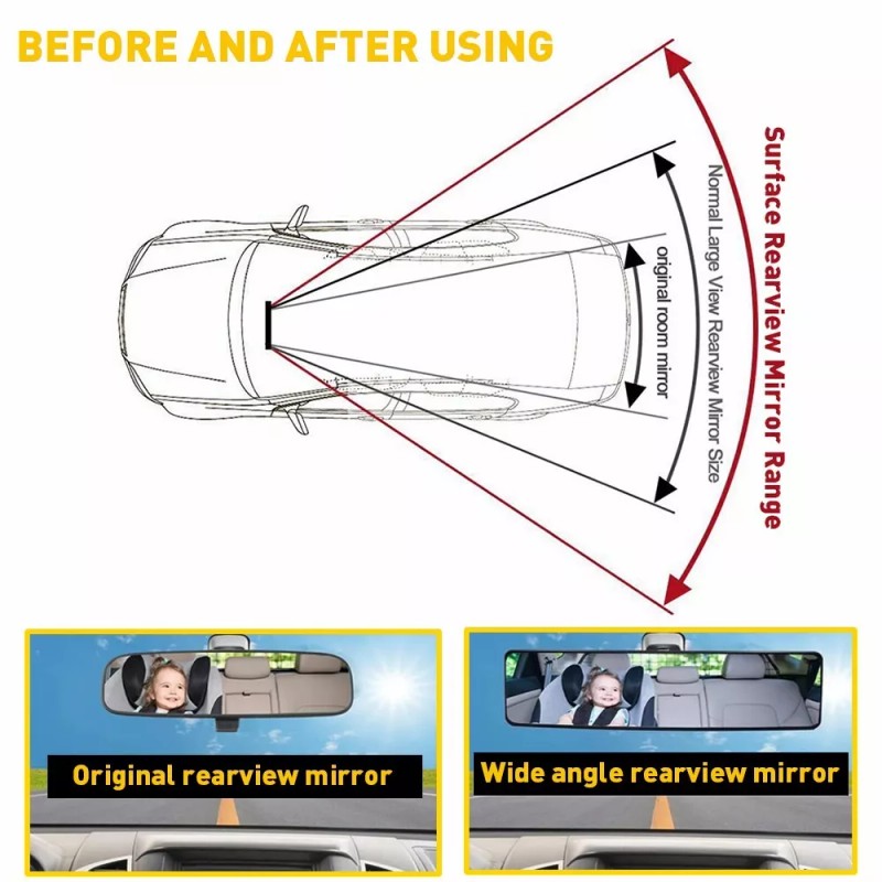 Features: *HD glass High-definition glass with clear imaging increases visibility by 300% and reduces blind spots for providing a wider view and better driving safety. *Easy installation This car mirror comes with two adjustable buckles. Just one touch you can fix it on your original interior rear view mirror. Easy to install and disassemble. You are able to complete it within 30 seconds without any tools. *High quality Made of sturdy ABS material to extend its service life and abrasive resistance.