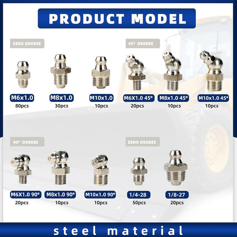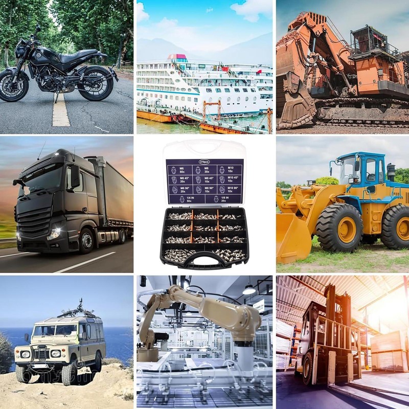 Crafted to be both versatile and long lasting, this grease nipple set is indispensable for maintaining mechanical systems. Used for lubrication in bikes, car, trucks, and agricultural machinery, these accessories are designed to support the longevity and efficiency of your equipment over time.