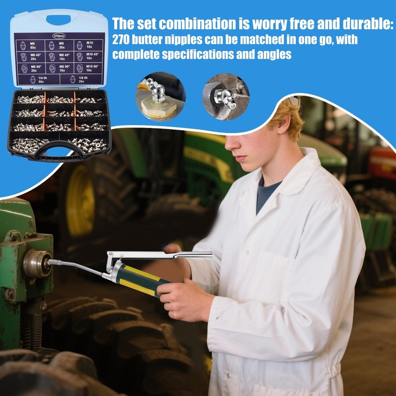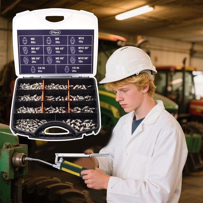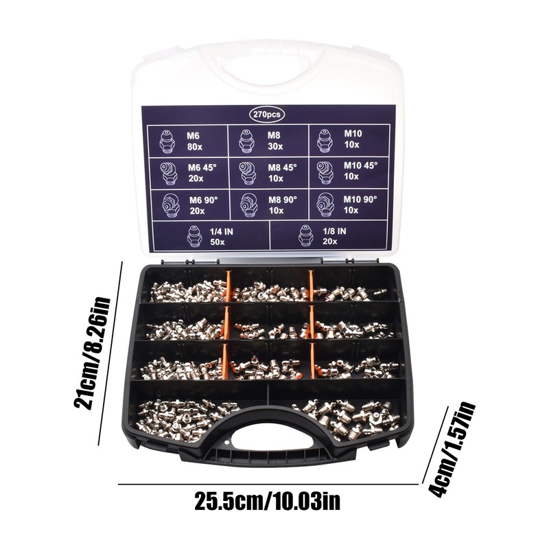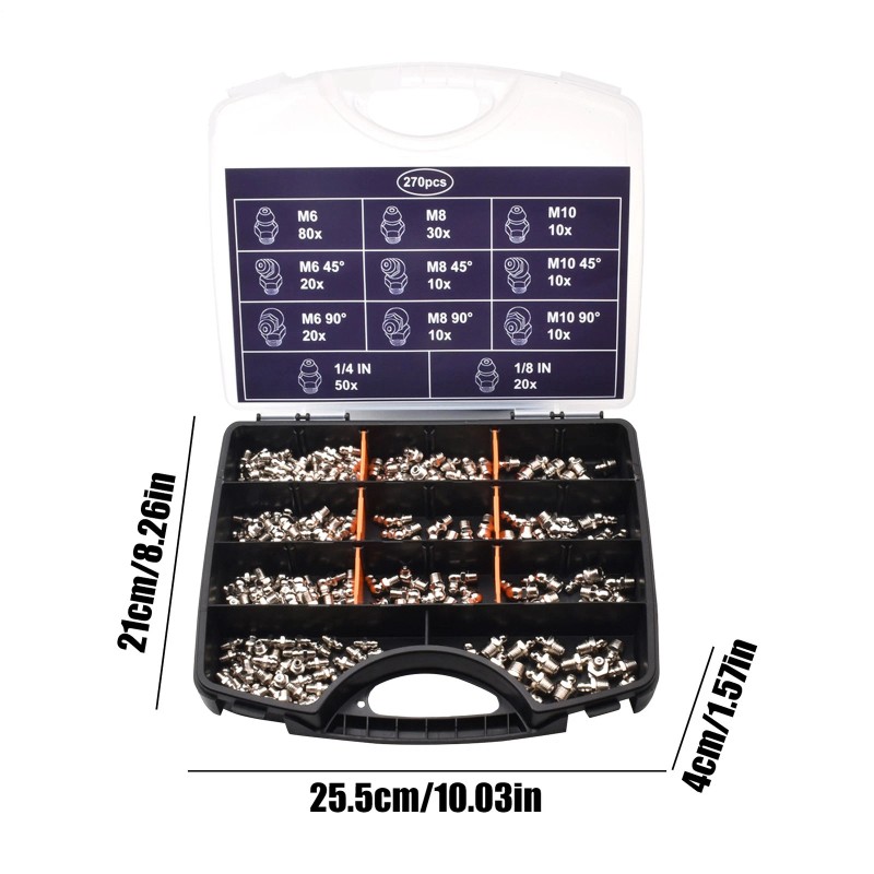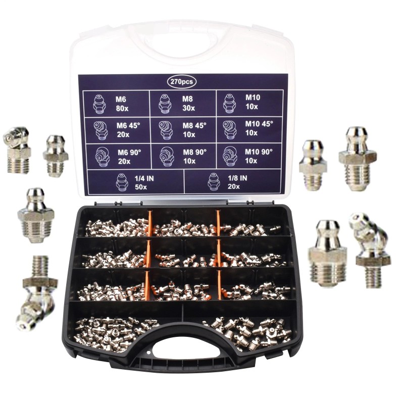 270x Grease Nipple Fitting Set Imperial & Metric Hydraulic Grease Gun Assortment