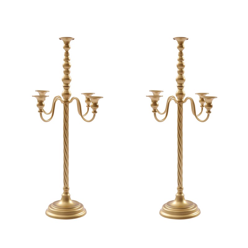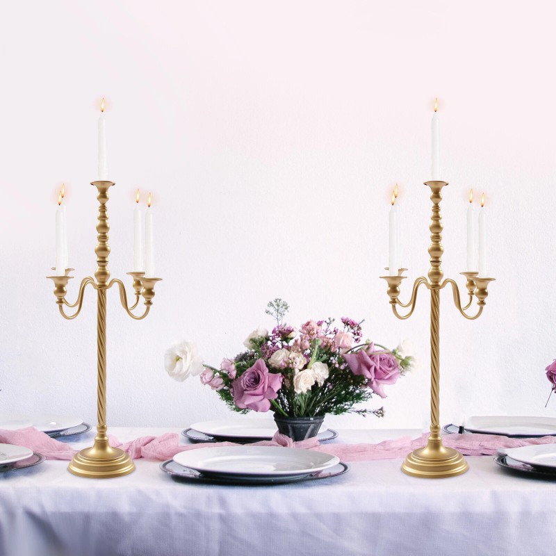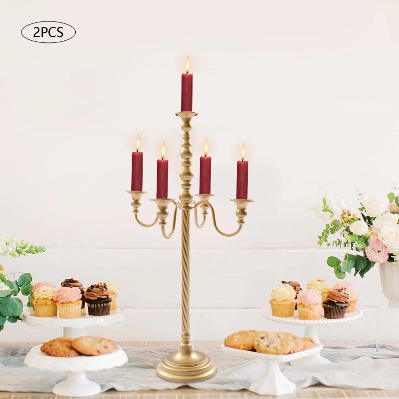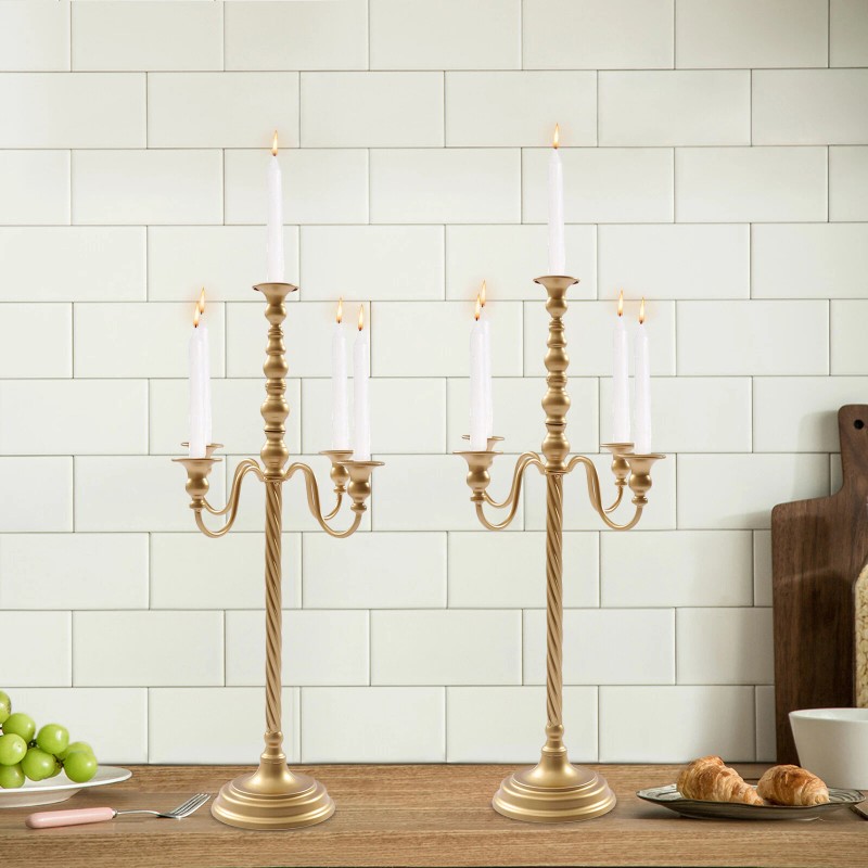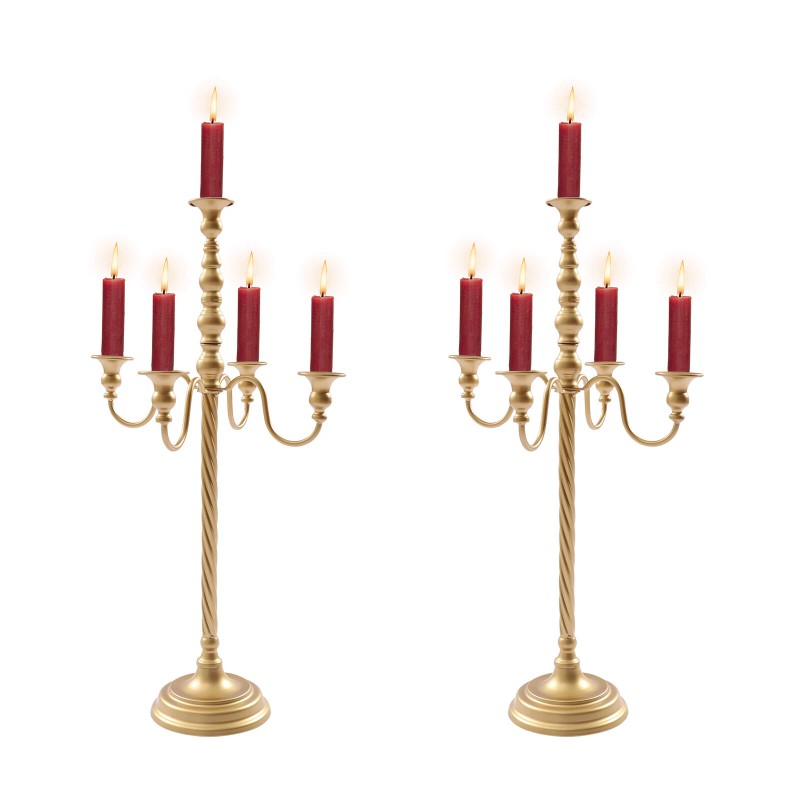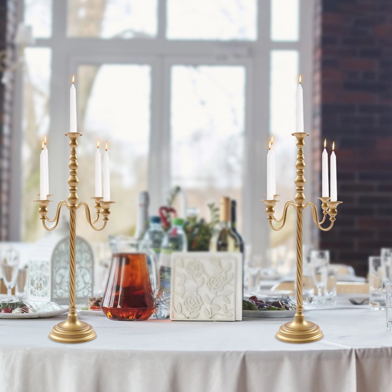 A Set of Two: This product includes two candlestick holders, meeting your daily needs. The 5-arm tall holder will provide a perfect amount of light illumination from the 5 candles.