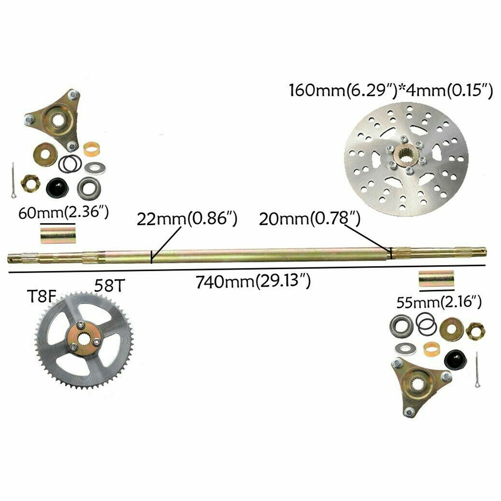 Axle Overall Length (from End to End): 29'' / 740mm
