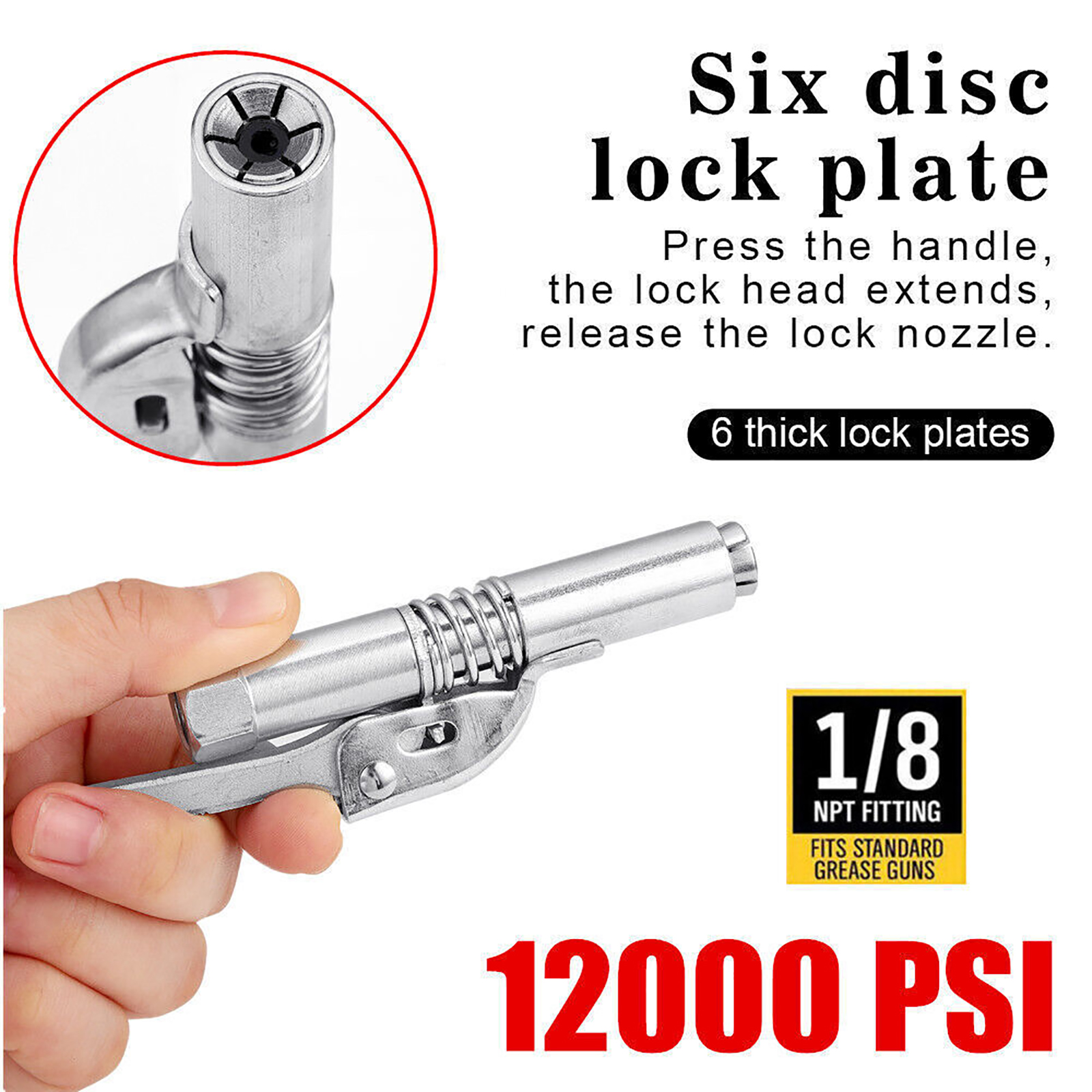 Unbranded 2Pcs 1/8” NPT Grease Gun Coupler Quick Lock Release Oil Injection Nozzle Tip